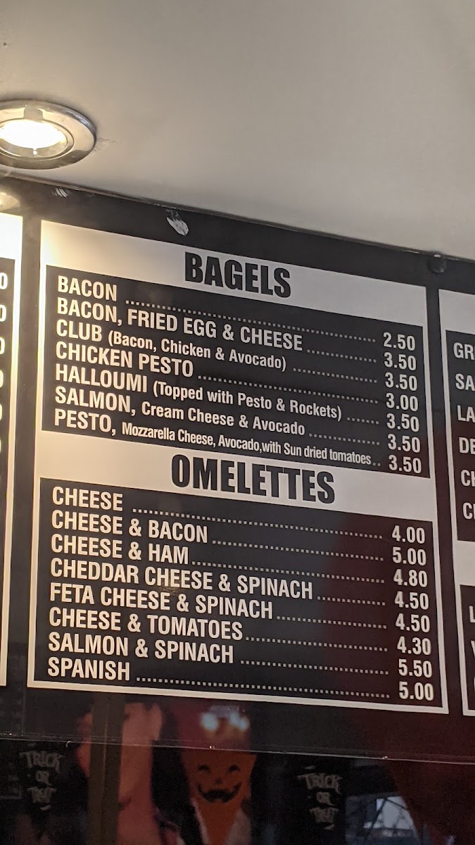 The menu features a variety of freshly prepared sandwiches and bagels, including options like a warm halloumi sandwich and the flavorful chicken pesto bagel. These choices, paired with soups such as vegetable and chicken, make for a light yet filling lunch or mid-afternoon meal. Meanwhile, the coffee offerings range from simple espressos to creamy flat whites and comforting hot chocolates, suited for an energizing start or a relaxing pause.